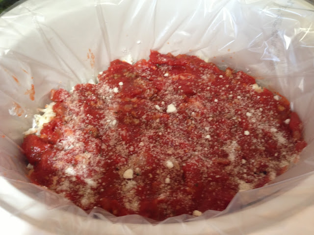 To be honest, I didn't follow creatingthroughlife's blog recipe pretty much at all. I already have a lasagna recipe that I love, so I used that recipe instead. I made the sauce as I normally would and instead of putting it in a pan to bake, I put it in the crock pot. I used whole wheat lasagna noodles and ground turkey instead of ground beef. I felt like I was living large with how healthy I was making this meal. hehe.